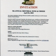 3. Quesbec Anglo Heritage Network Wine & Cheese - April 26th